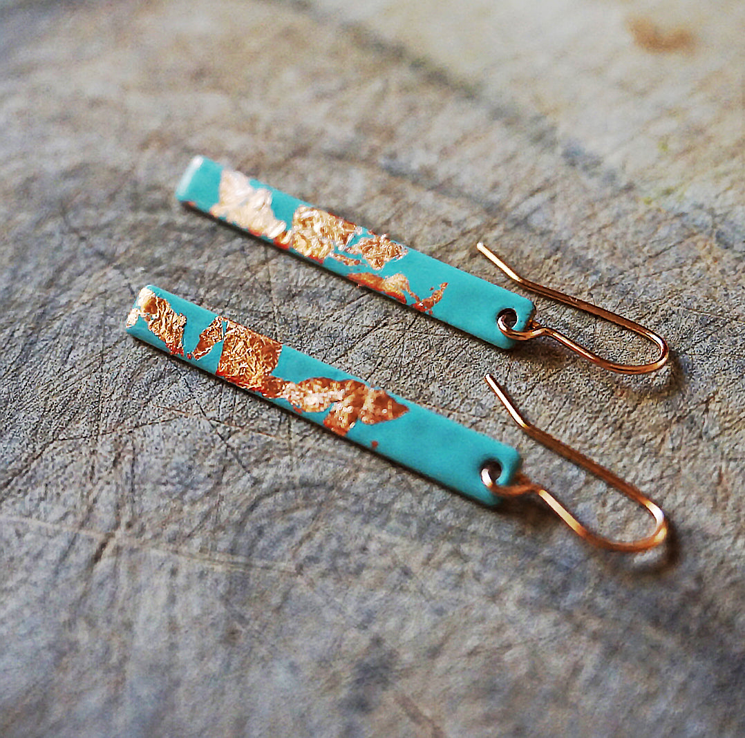 A collection of stunning hand-enamelled turquoise earrings contrasted with the warm glow of...