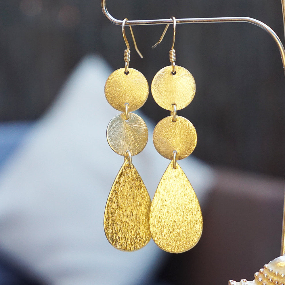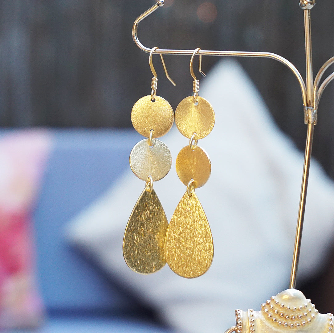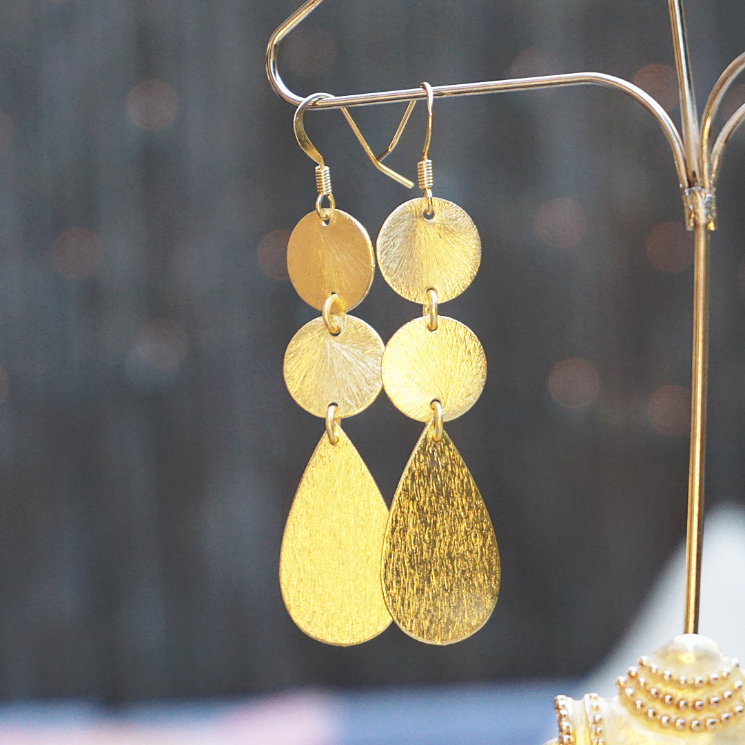 Handmade earrings | Chic, lightweight golden drop earrings that beautifully reflect light and are perfect for adding sophisticated style to outfits, taking you from daytime to evening and beyond.