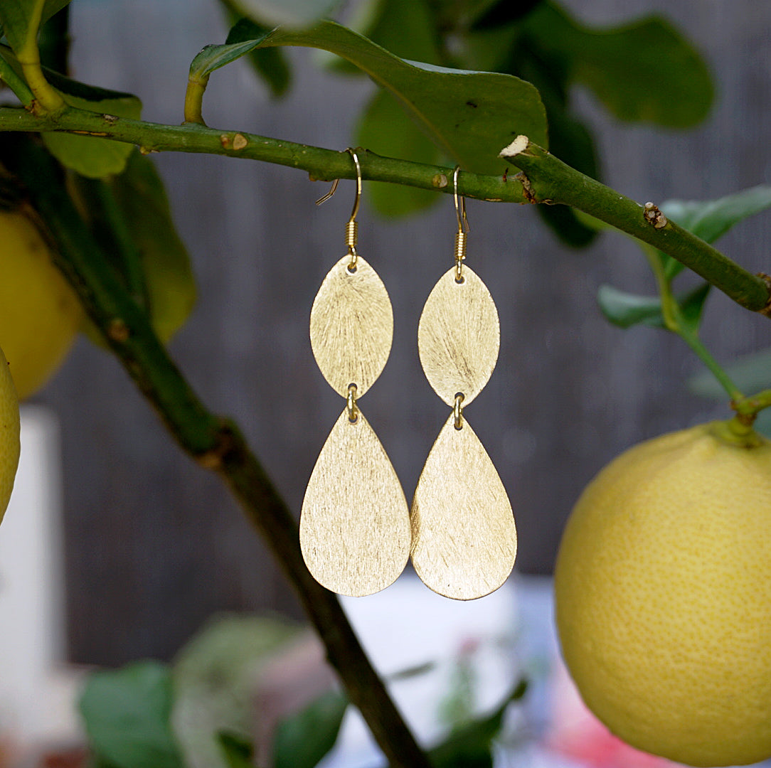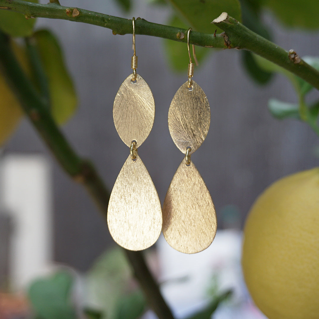Handmade earrings | Chic, lightweight golden drop earrings that beautifully reflect light and are perfect for adding sophisticated style to outfits, taking you from daytime to evening and beyond.