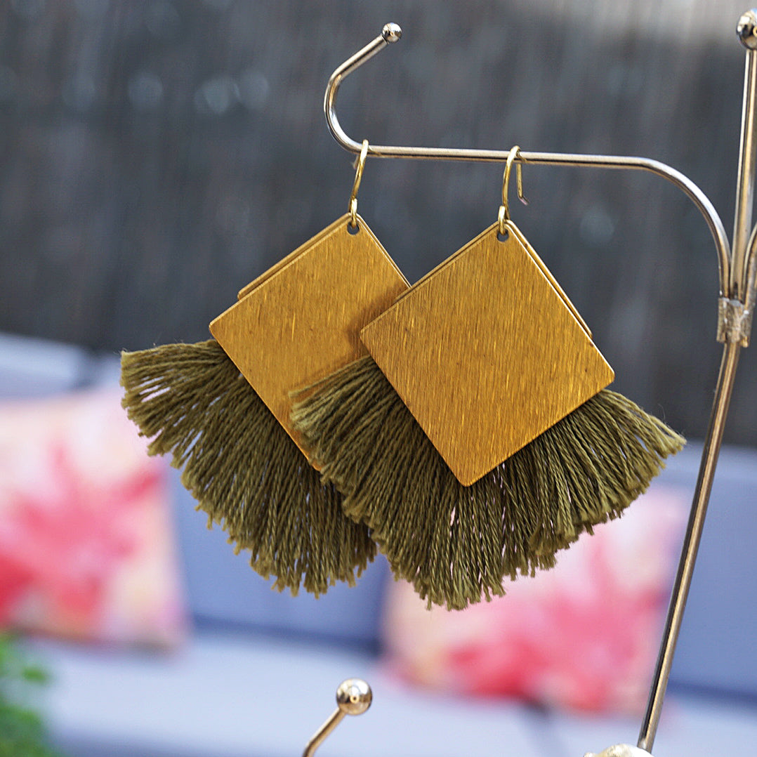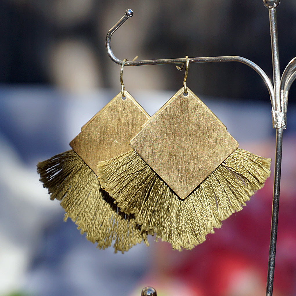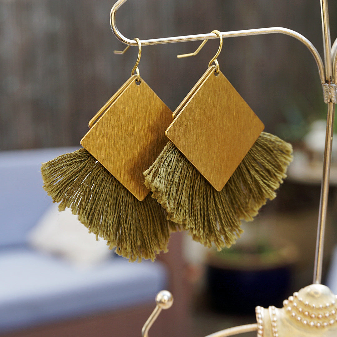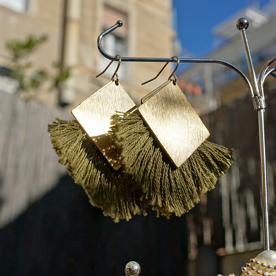 Handmade earrings | A golden tableau shines beautifully with flamenco-inspired olive tassels, taking you straight to the heart of Andalucía.