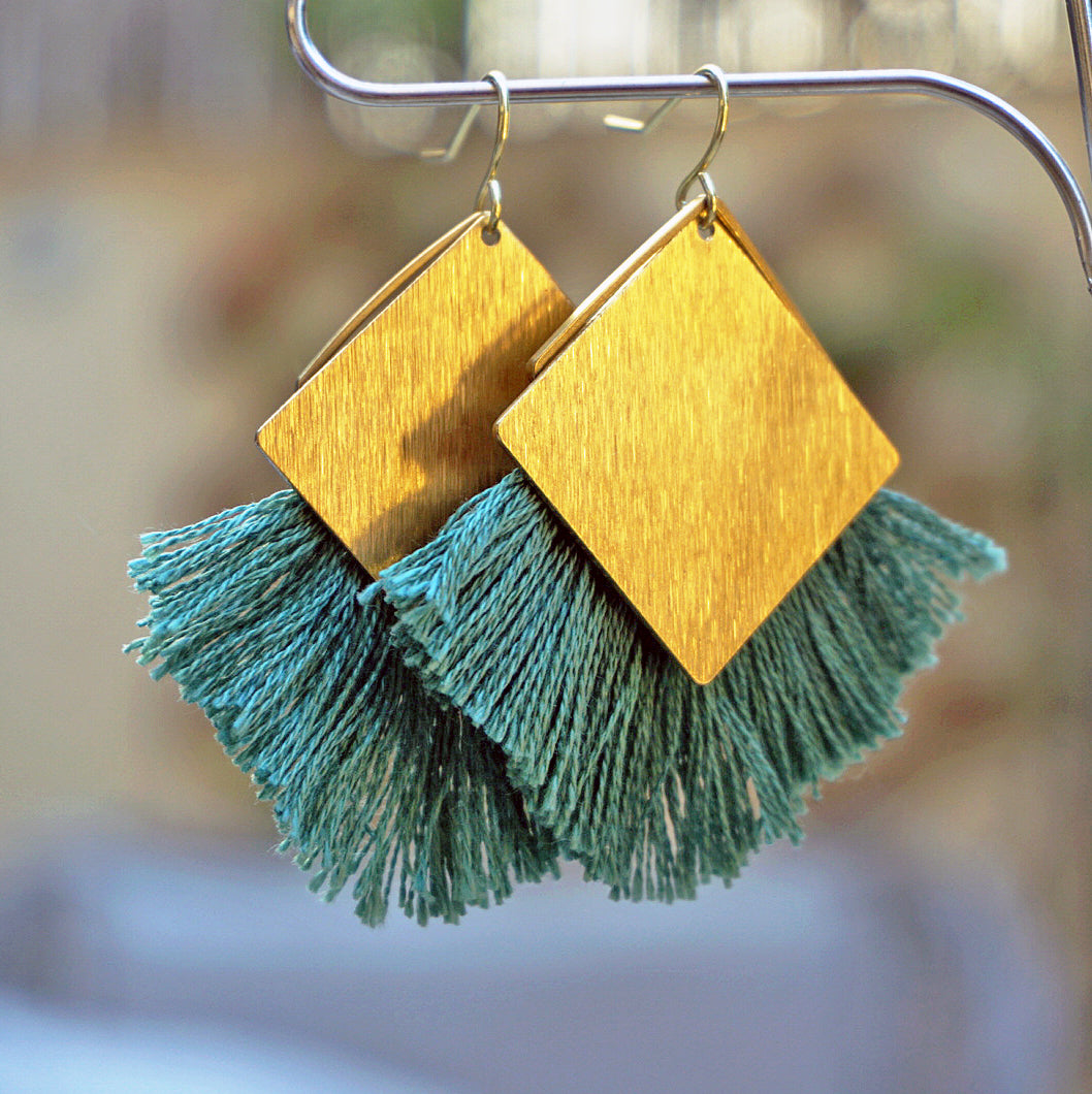 Handmade earrings | A golden tableau shines beautifully with flamenco-inspired olive tassels, taking you straight to the heart of Andalucía.