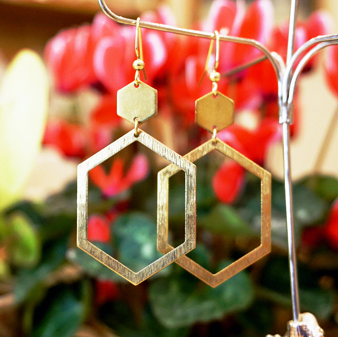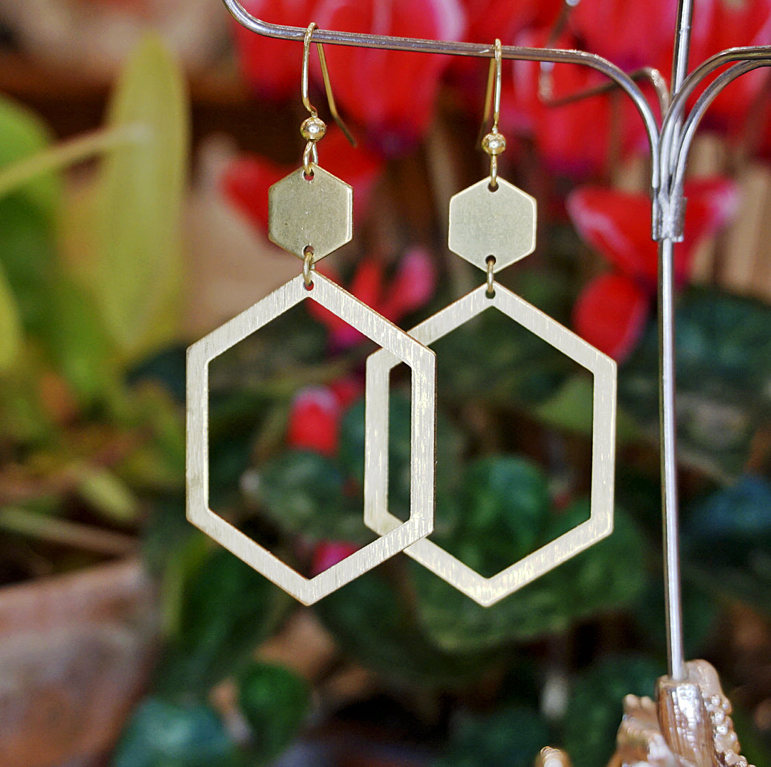 Handmade earrings | Super lightweight hexagon drop earrings. Perfect for elegant daytime wear through to evening and beyond.