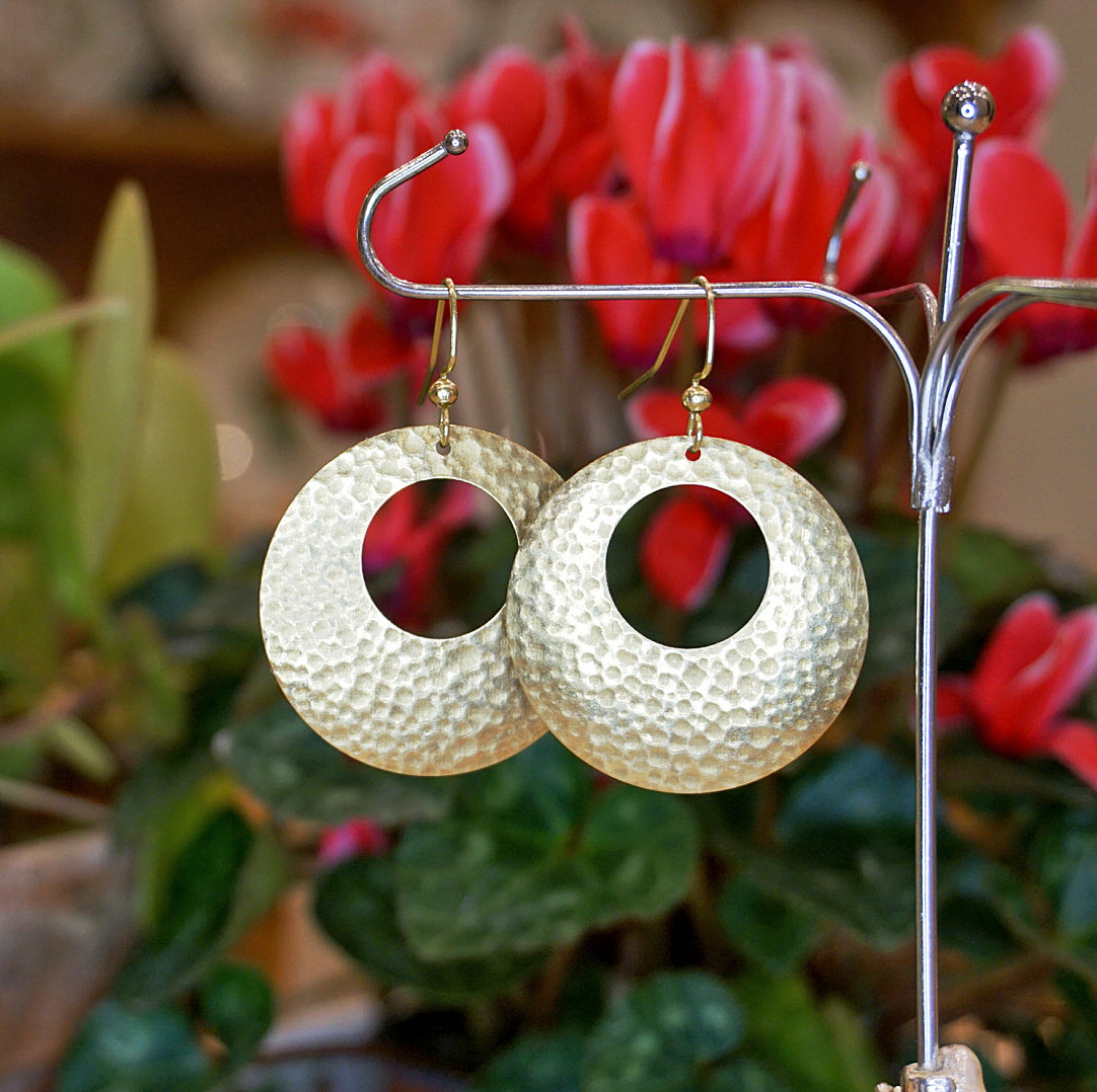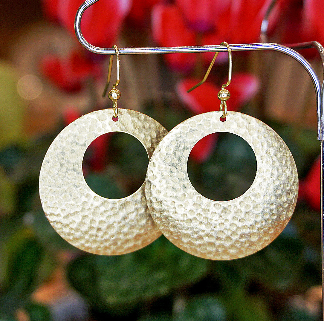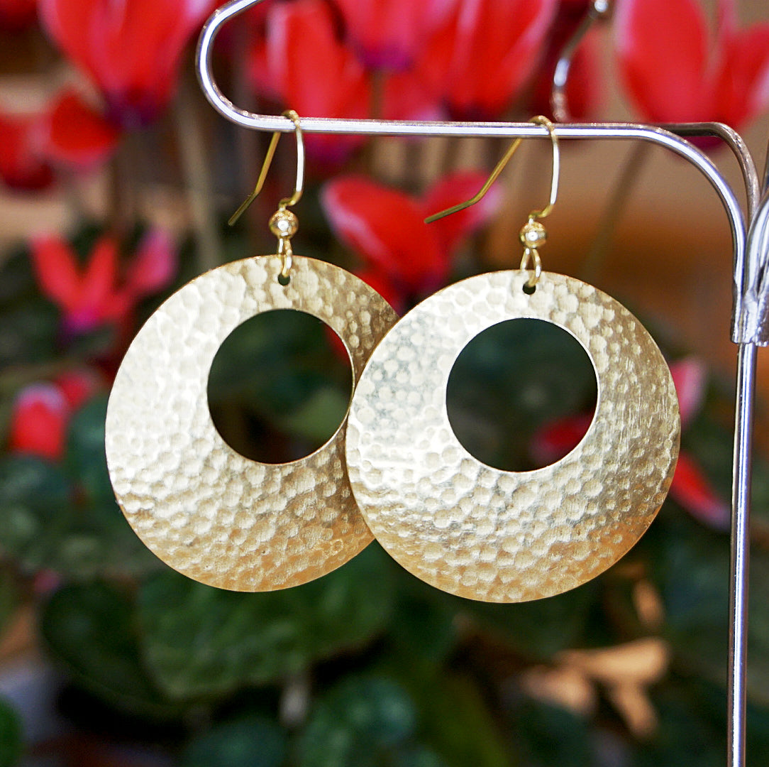 Handmade earrings | Super chic golden, lightweight hammered discs, perfect for effortlessly making an outfit instantly glamorous and taking you through the party season and beyond.