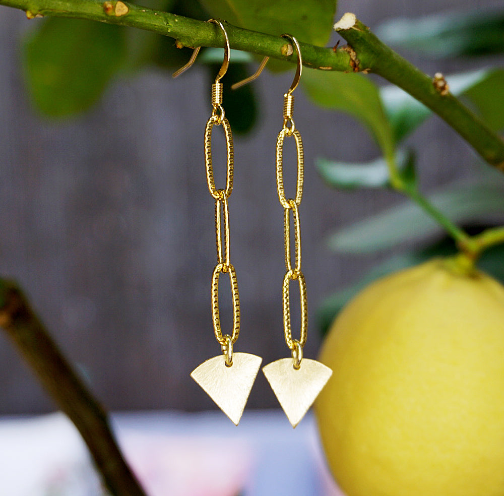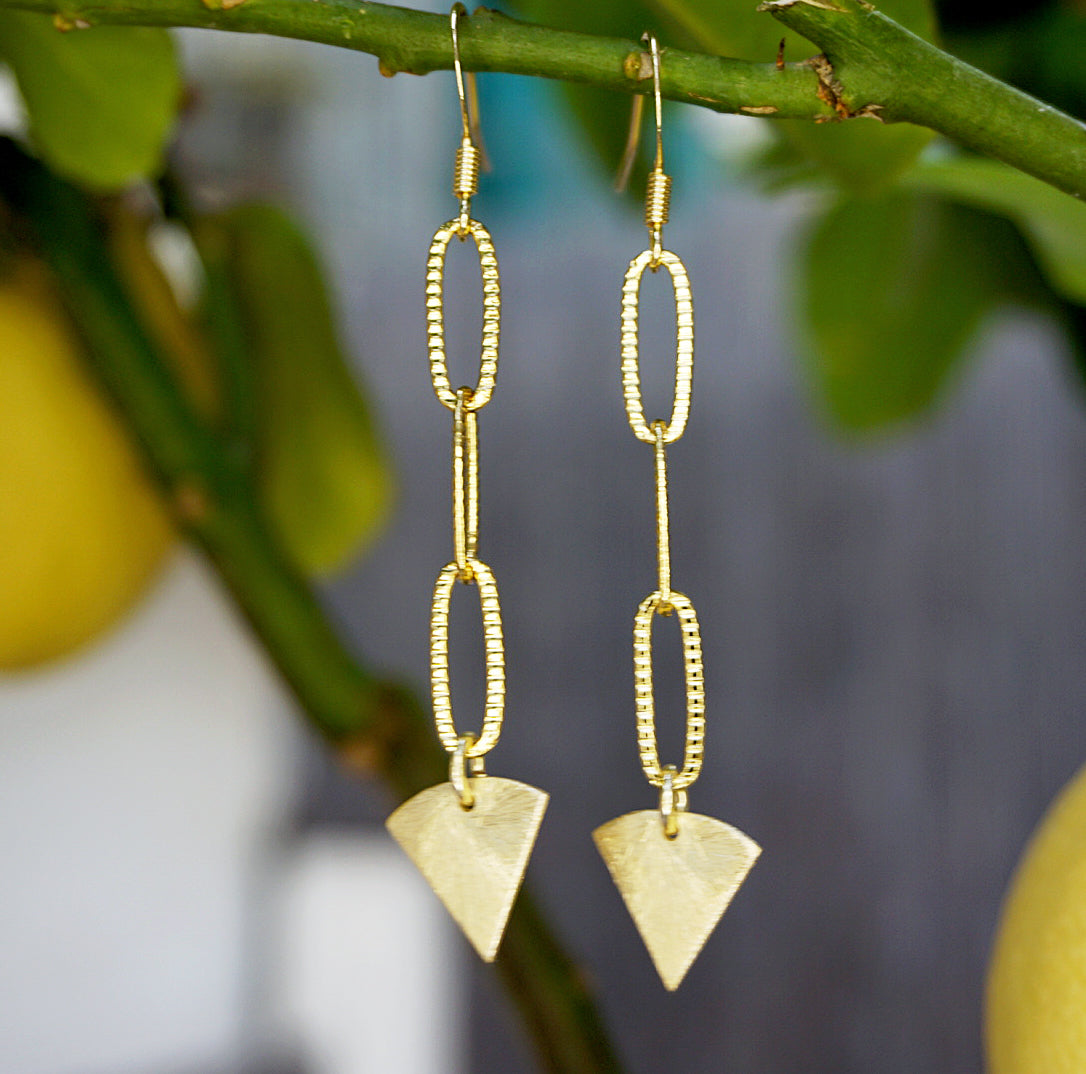 Handmade earrings | Super lightweight drop earrings with three beautiful golden links and an elegant arrow. Perfect for elegant daytime wear, through to evening and beyond.