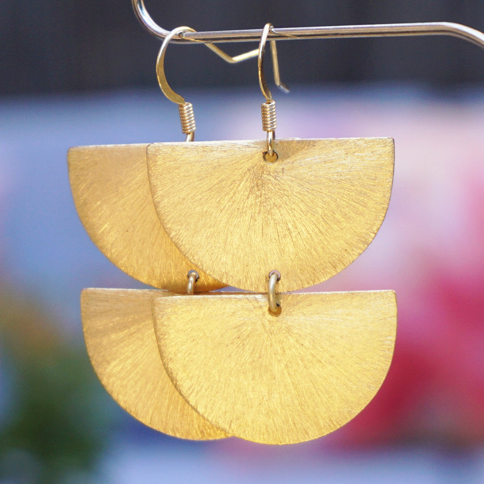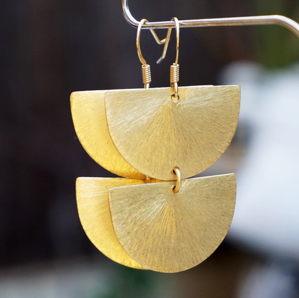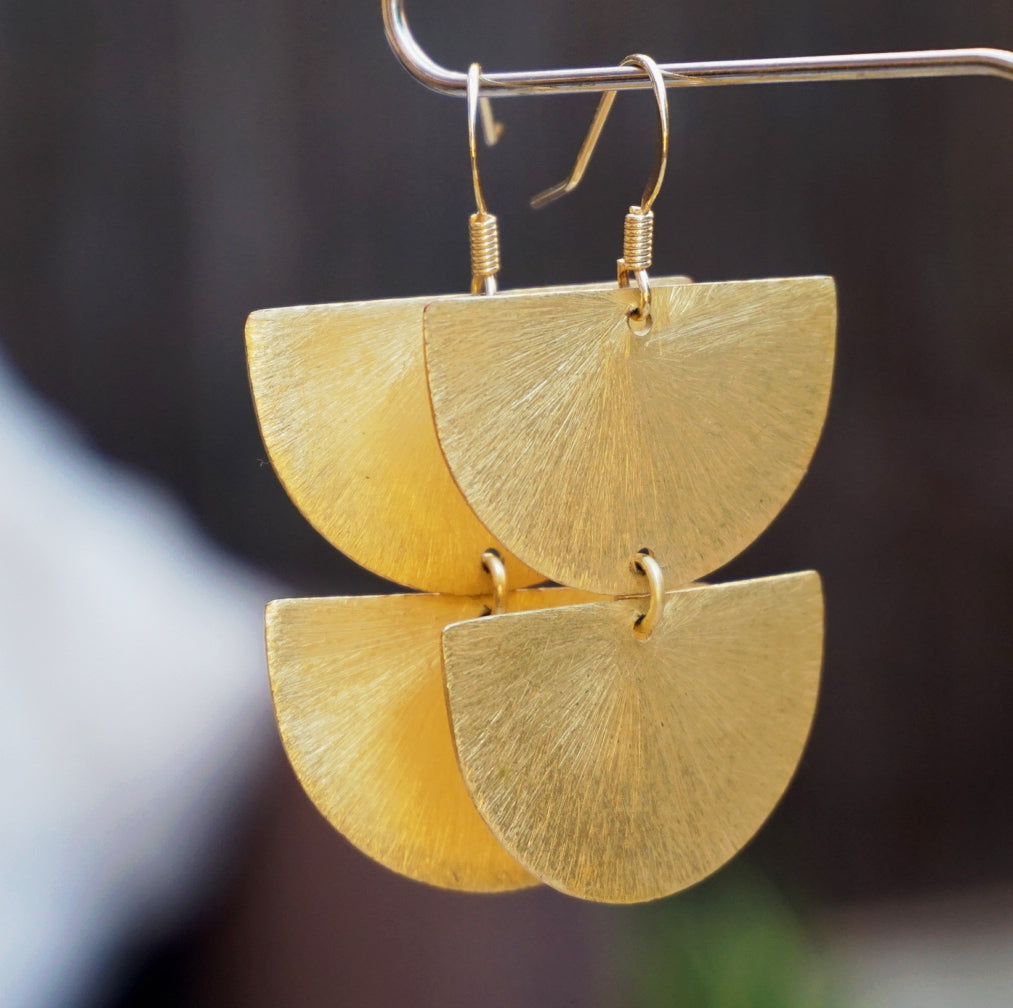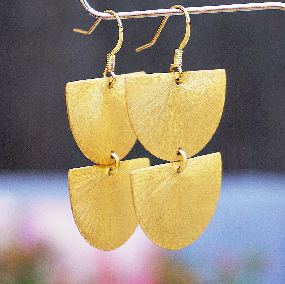Handmade earrings | Lightweight golden drop earrings, which beautifully reflect the sun's warm glow, perfect for taking you from daytime to evening and beyond whether in the summertime or winter party season.