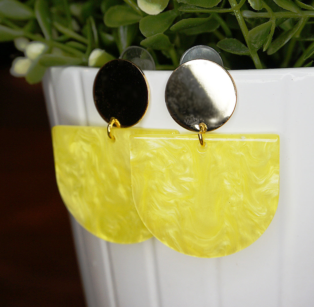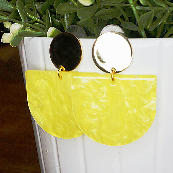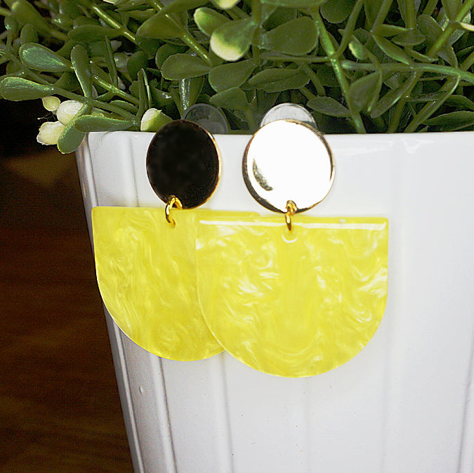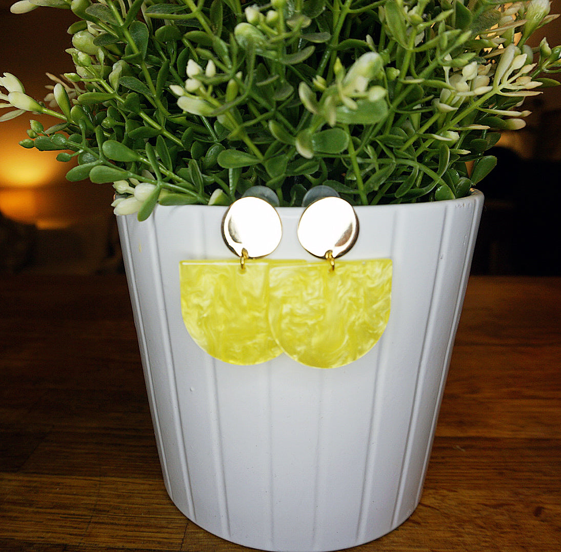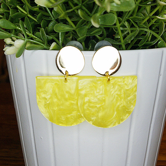 Handmade earrings | Stunning neon marbled-yellow colour pop statement earrings. Perfect for brightening a glamorous daytime look or for going dancing all night.